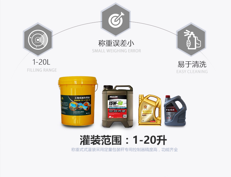 半自動油脂灌裝機(jī)適合各種不同粘稠度的油脂油類,能兼容瓶型、桶型的灌裝,可用于潤滑油、機(jī)油、花生油、食用油、大豆油、橄欖油等灌裝