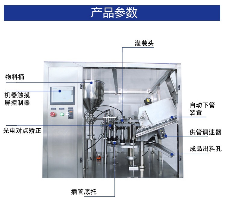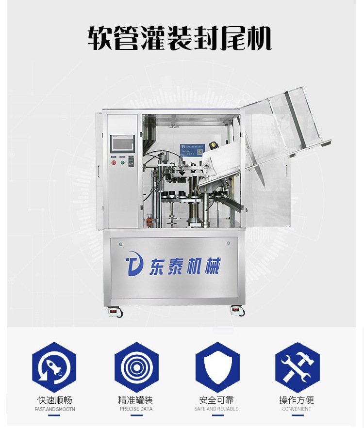 1.適用于醫(yī)藥、食品、化妝品、日用化工等行業(yè),對(duì)復(fù)合管,塑料管,鋁管進(jìn)行灌裝封尾。可將各種糊狀、膏狀、粘度流體等物料順利準(zhǔn)確地注入軟管中,并完成封尾和打批號(hào)、