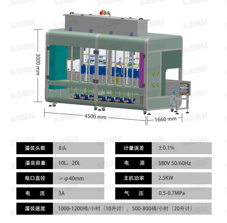 • 該系列灌裝機采用容積式計量灌裝原理,多項專利認證,適用于各種規格(1-5L)的液體肥等液體灌裝。設備采用伺服驅動活塞計量,保證了 1‰的灌裝精度,在保證灌裝精度的同時,提高了 2...